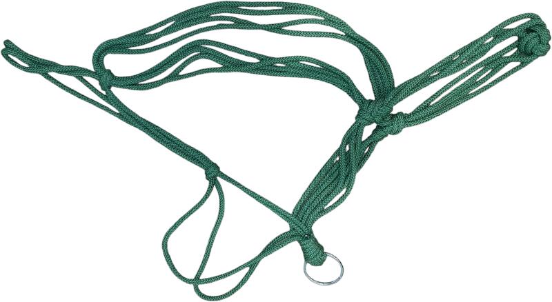 Hagyományos "paraszti" kötőfék. Műanyag alapanyagú, toroknál csúszócsattal szabályozható bőség, megkötéshez alul fémkarika. Puha, selymes anyagból. Anyaga: műanyag/fémMérete: 55Színe: zöld